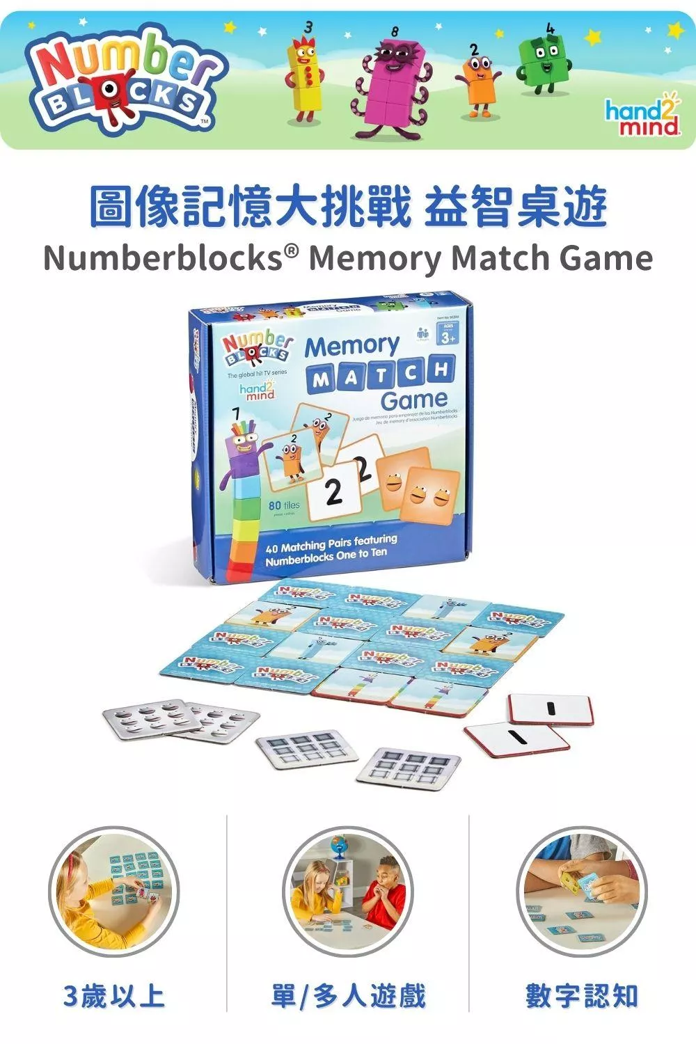 喜歡動畫《Numberblocks數字積木》的大朋友小朋友趕緊看過來! 這款由官方授權的聯名益智桌遊-圖像記憶大挑戰(Memory Match Game),不僅能讓孩子在輕鬆愉快的遊戲過程中學習數字,還能同時培養孩子的記憶力、專注力與觀察能力,讓數學啟蒙變得有趣又自然。