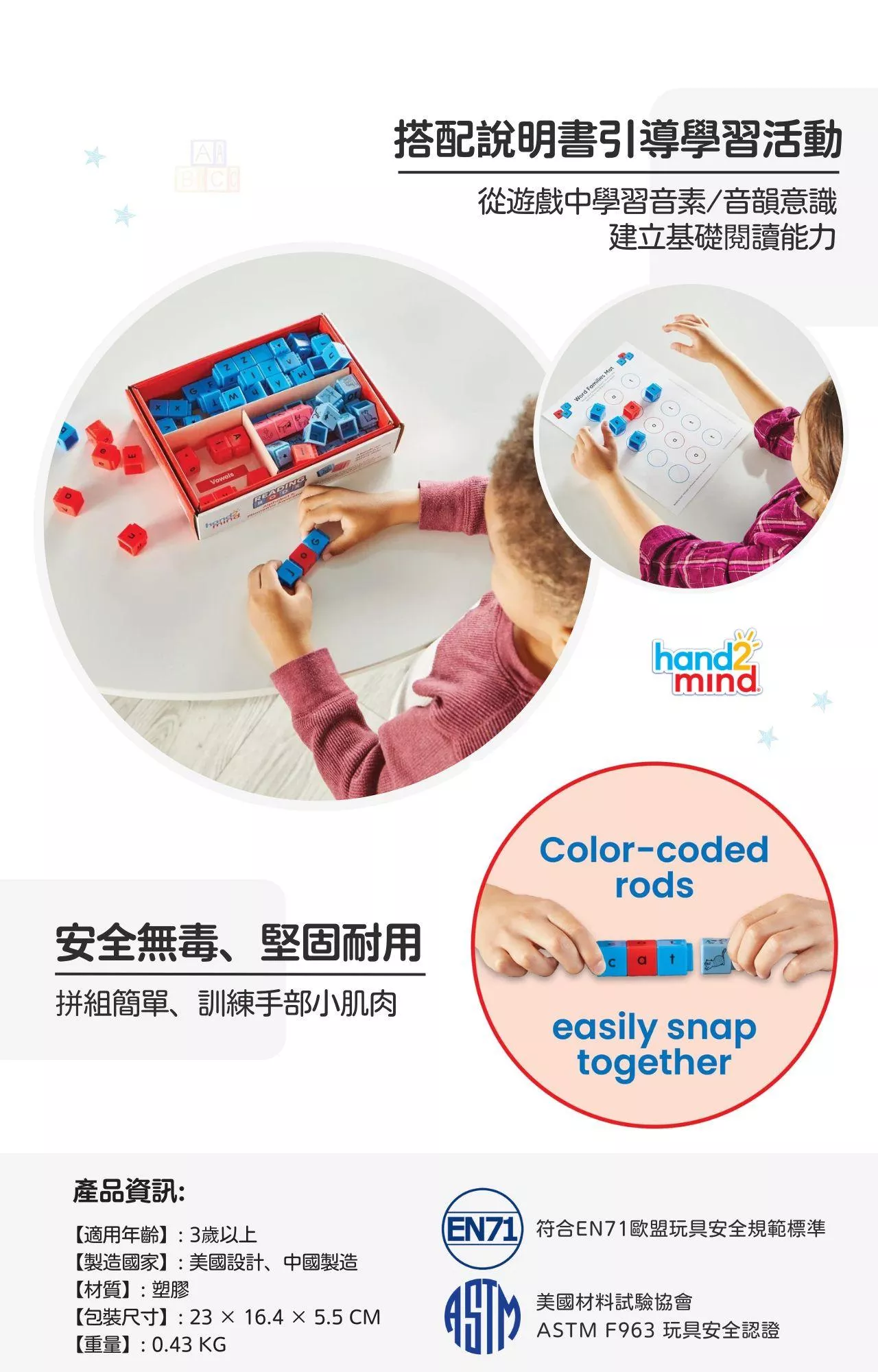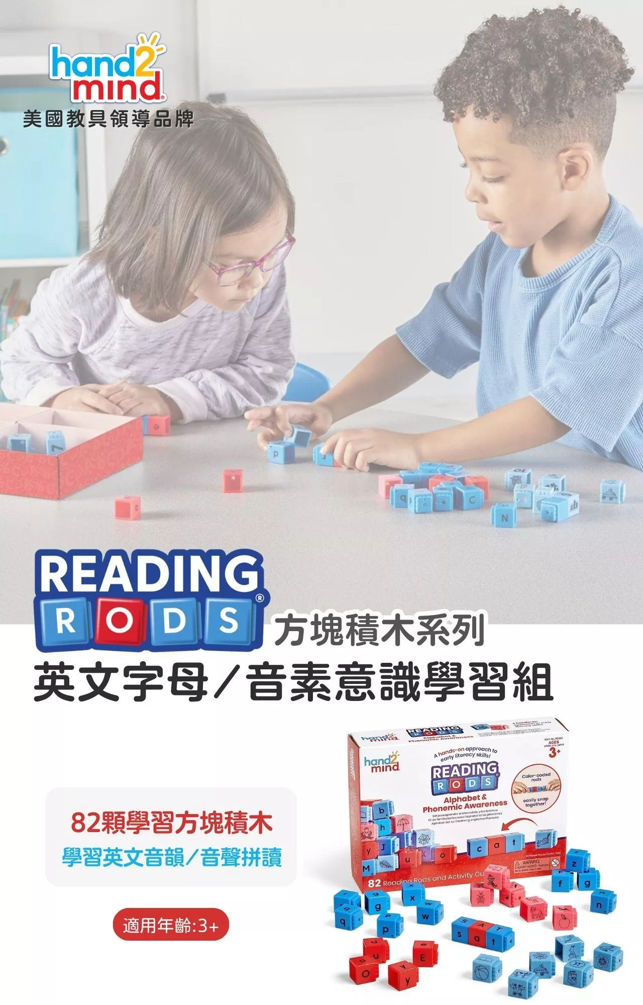 美國教具領導品牌hand2mind Reading Rods® 英文學習方塊積木,是以科學為基礎所設計的多重感官教具,通過不同顏色的積木組合產生的視覺和觸覺體驗,成為孩子啟蒙英文的試金石!