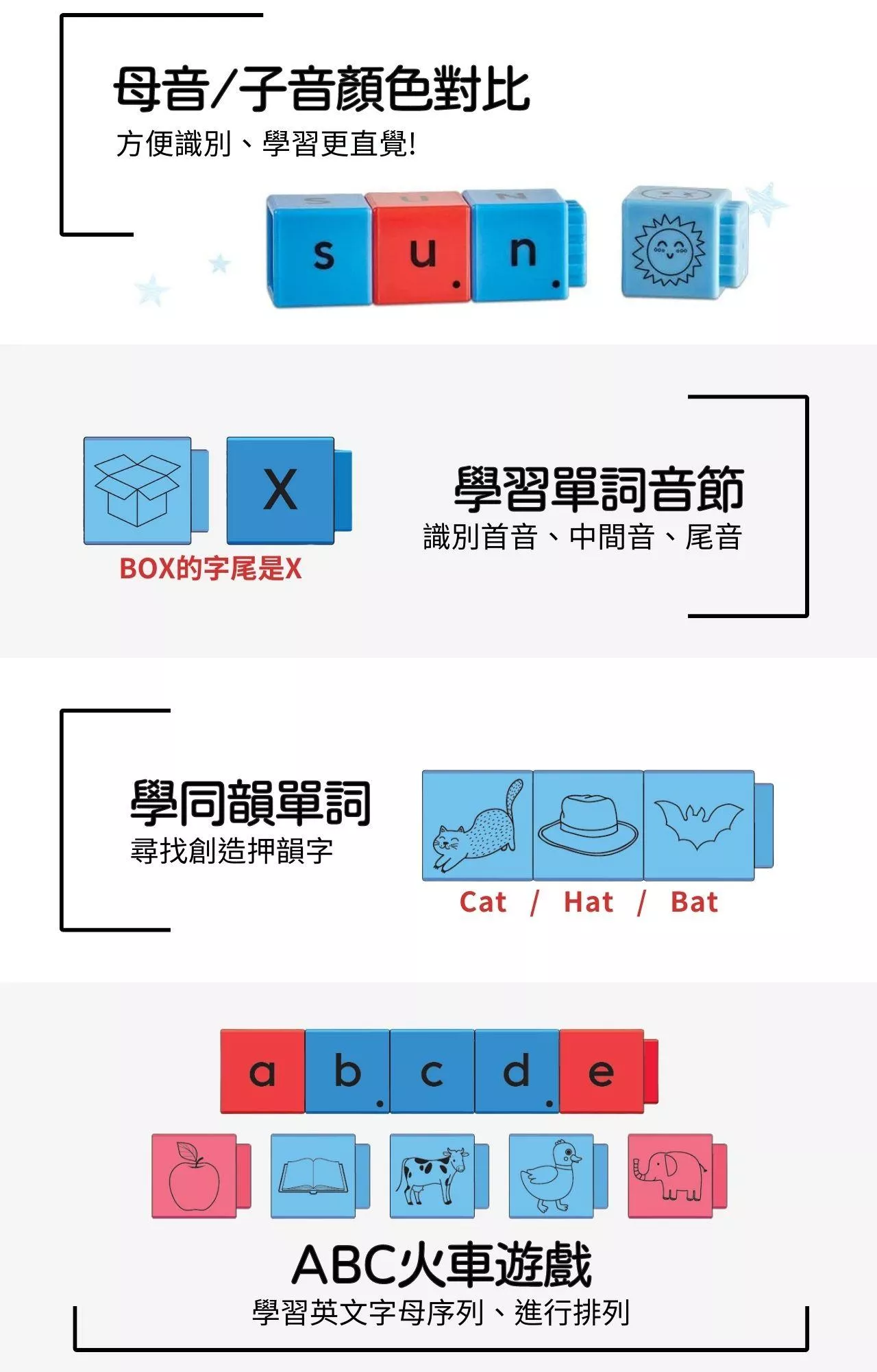 - 學習識別英文字母音素/音節/單字拼讀
