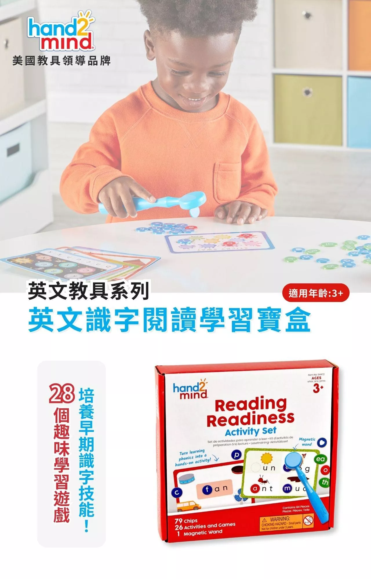 美國hand2mind《Reading Readiness Activity Set 英文識字閱讀學習寶盒》,讓孩子們動動小手,以探索、互動的學習方式讓英文學習變得更有趣!